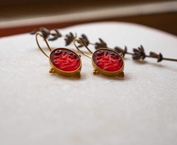 Monapetra'nın gelincik motifli 925 ayar gümüş üzeri 24 ayar altın kaplama intaglio küpeleri, dört farklı renk alternatifiyle ocak 2022 itibarıyla The MET Fifth Avenue 82.sokak girişindeki 1.katta bulunan ana mağazada yerini aldı.