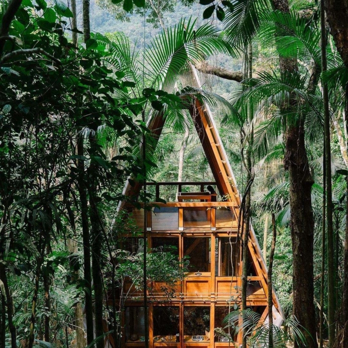 Herkesin doğaya açılma özlemi içinde olduğu bugünlerde, mimar Marko Brajoviç'in Brezilya ormanının ortasında inşa ettiği üç katlı ahşap ev, tasarım dünyasında ilgiyle karşılandı. Metrelerce uzunluktaki ağaçların arasından yükselen, dikey formda yapılmış evin sivri çatısı 12 metreye kadar çıkıyor.
