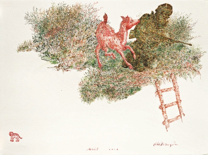 Mehmet Güleryüz, İsimsiz, el yapımı kağıt üzerine ekolin, 2018