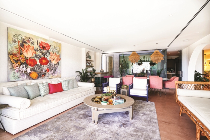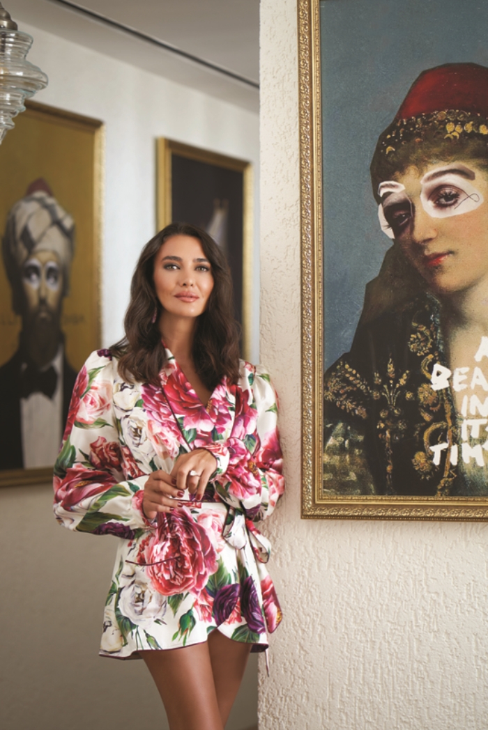 Geçen sene taşındık biz buraya. Eşim Nedim Keçeli’nin yani Seba İnşaat’ın Bodrum’daki son projesi. Ben ilk çizimlerini gördüğümde aşık olmuştum bu siteye; kendi hayallerimize göre döşedik her köşesi çok içime sindi o yüzden her yerde vakit geçiriyorum diyebilirim. Bahçe tabii ki yaz olduğu için en çok vakit geçirdiğim alan. Akşamları bahçedeki sinema alanında film izlemeye bayılıyoruz.
