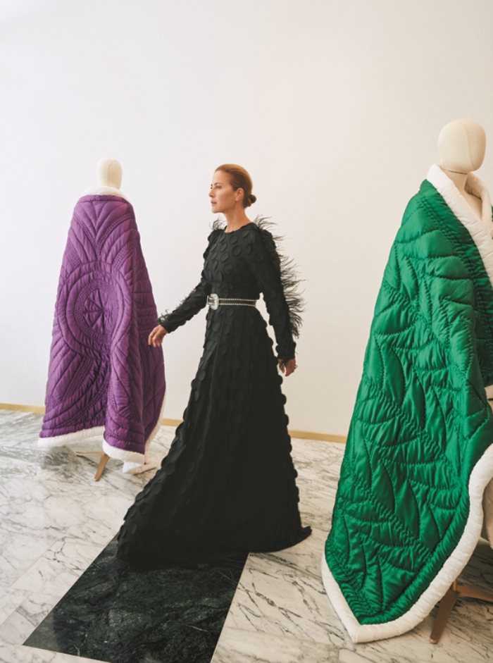 Geçtiğimiz Aralık ayında Ayça Sarc’ın ‘Yorganlar Fora’ sergisi çok ilgi gördü. İlgi görmesinin en büyük sebeplerinden biri de aslında yarım kalmış zanaatımızın ne kadar kıymetli olduğu ve bunun sanat diliyle yeniden yorumlanmasıydı. Koleksiyonlarımızda hep zanaatlerden ilham alırım. Özellikle Türk sanatında tekstili ilgilendiren o kadar çok zanaat var ki bunu mutlaka bir şekilde hep koleksiyonların içine katmaya özen gösterdim. El işi işlemeler, boncuk işlemeler gibi… Hatta bu işin biraz sosyal sorumluluk tarafına da değindim. Bugüne kadar evlerde yaklaşık 3000 kadına el işi yaptırıp onları da koleksiyona dahil ettim. Eski kaybolan değerlere sahip çıkmak her zaman bizim için çok kıymetliydi. Bu sergiden aldığımız ilhamla 2019-20 Sonbahar/Kış koleksiyonumuzu yarattık ve kampanya yürütmek istedik. Bunlar bizim için kaybolan değerler. Bu değerleri yeniden gün yüzüne çıkarıp yükselen değer adı altında kültürel değerleri tasarımlarımızla, kampanyalarımızla birleştirmek istedik. Bunun üzerine Ayça Sarc ile birlikte güzel bir iş birliği yaptık. Onun için de yenilikçi bir moda markasıyla sergiyi buluşturmak heyecan verici oldu. Altındaki çıkış noktası çok daha önemli. Serginin dokusundan ilham aldığımız detaylar koleksiyonumuz için çok kıymetli. Hala bugün vintage parçaların kıymetli olmasındaki sebep artık bu detaylar yapılamıyor. Bunu en özel kılan husus da geçmişle olan bağınız ve kültürel mirasınıza sahip çıkmanızla alakalı.