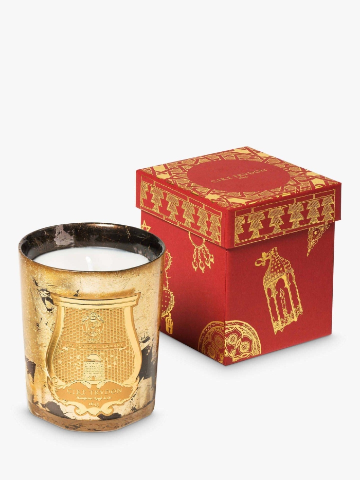 Cire Trudon’un, “Christmas Ernesto” Fas’ın Büyülü Çarşısı’na seyahat ederek; sıcak sarkıt ışıklar, renkli erimiş camlar ve altın bakır gibi aksesuarların arasında keyifli bir tura çıkarıyor. İçeriğindeki bergamot, meşe ağacı, karanfil ve greyfurttan oluşan notalarının yanı sıra özenle dekore edilmiş altın renkli cam tasarımıyla da yılbaşında ruhunu yansıtmaya hazır.