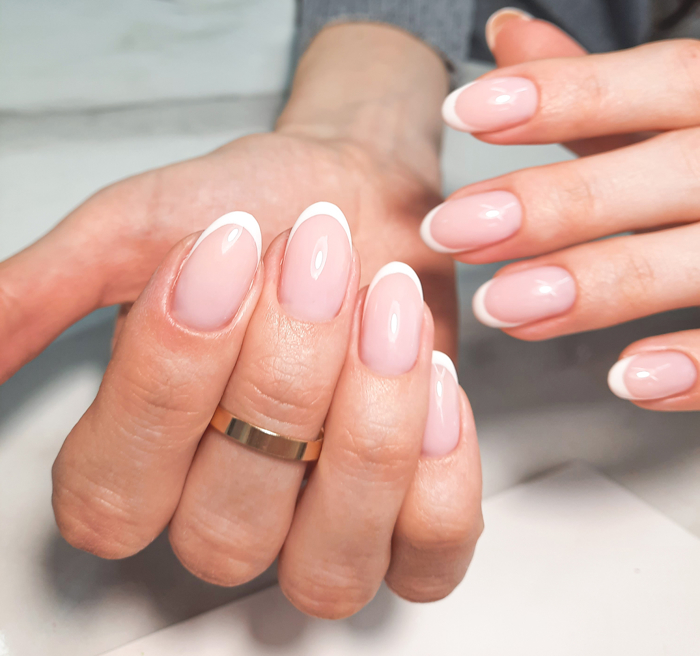 Elbette ki salon manikürünün havası bambaşka ama bu tırnaklara sahip olmak o kadar da zor değil. Evde kendiniz de yapabilirsiniz. Mantık şu: Şeffaf pembeye yakın bir baz, kırık beyaz tonlarda tırnak uçları, üzerine parlak bir top coat.