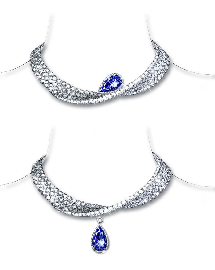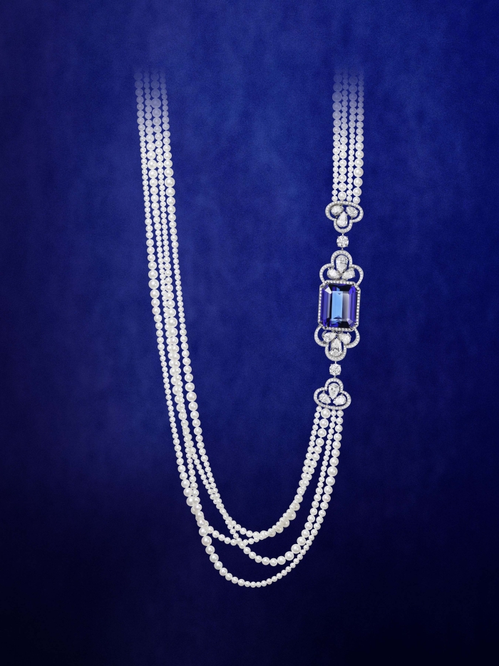 30'lu yılların başında Amerika'dan gelen bir dalga tüm dünyayı etkisi altına almıştı. Jazz müziği tarihe damgasını vuruyordu... Dazzling Jazz'in asimetrik bir dizim tekniğiyle sıralanmış farklı boyutlardaki incileri müziğin ritmini yaratan notaları anımsatıyor. Dazzling Jazz, ihtişamıyla gece göz kamaştırdığı kadar günlük hayata da adapte edilebiliyor. Kolyenin üzerinden ayrılabilen Tanzanitli ve pırlantalı parça, geleneksel şerit dokuma atölyesinde tasarlanmış bir kemerin üzerine broş olarak adapte edilebiliyor. Dazzling Jazz adlı kolye, 60.25 karat dikdörtgen kesim bir Tanzanit, 14.7 karat 896 adet pırlanta ve beyaz incilerden oluşuyor.