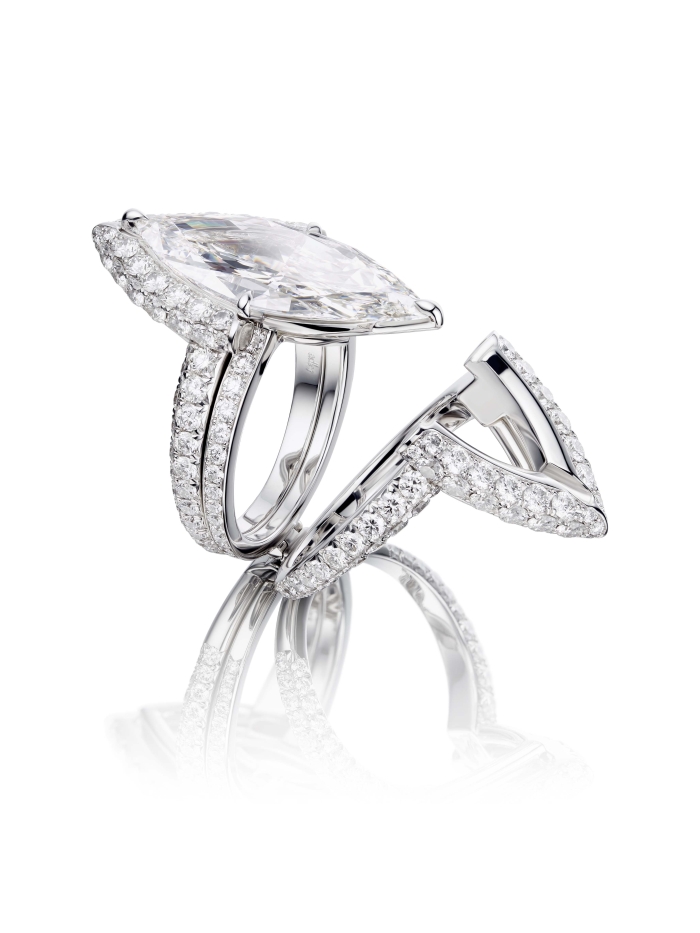 6.08 karatlık görkemli bir markiz pırlantaya sahip Clic-Clac adlı yüzük, hem 194 adet pırlanta çerçeveli, hem de sade olarak kullanılabiliyor.