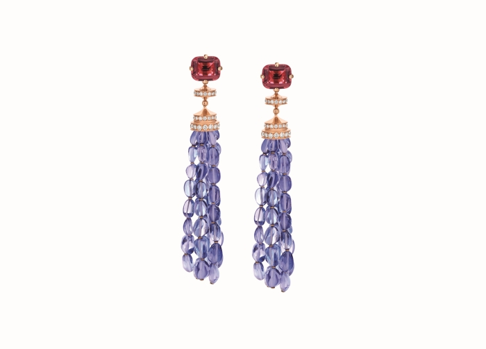 Anya Taylor-Joy'un Dior elbisesine Bvlgari'nin 90 karatlık tanzanite küpeleri ve Divas' Dream'in pembe altın ve pembe safir yüzüğü eşlik etti.