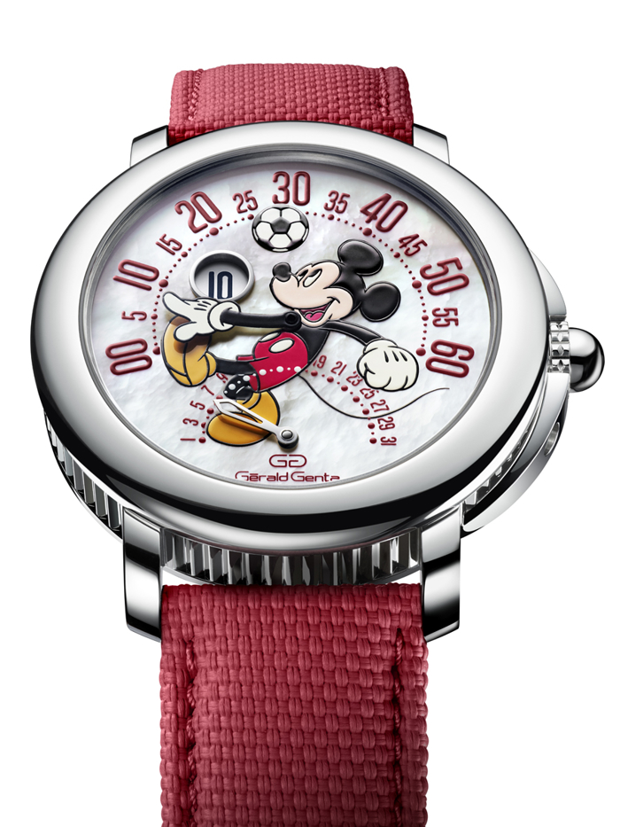 1969 yılında kendi üretim tesisini kuran ünlü tasarımcı Gérald Genta, çağdaş saatin temellerini burada attı. Yaratıcılıkta sınır tanımayan, oyuncu bir ruha ve esprili bir yaklaşıma sahipti. Disney ile iş birliği yapan ilk tasarımcı olduğu zaman Mickey Mouse ve Donald Duck karakterlerini ince bir yaratıcılık ve sofistike teknikler içeren saatlere entegre etmişti. Arena Bi-Retrograde Mickey Mouse saat de bu tasarımların en yeni versiyonu olarak sunuluyor. Öte yandan, futbol Mickey Mouse'un spor dünyasına ilk girişi değil çünkü geçmişte bir yarış pilotu olarak da saatlerde yer almıştı. Hatta golf oyuncusu olduğu bir Gérald Genta tasarımında golf sopası şeklindeki eli, retrograde dakika göstergesini oluşturmuştu.