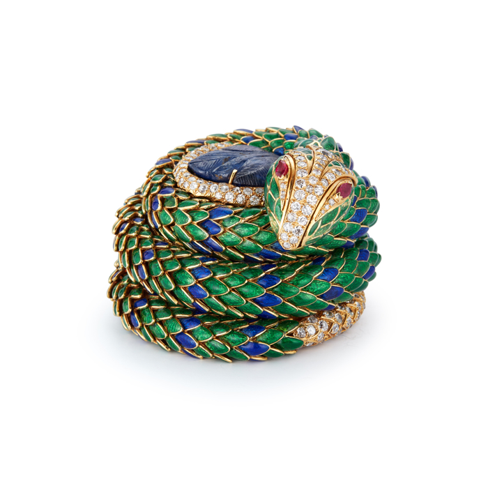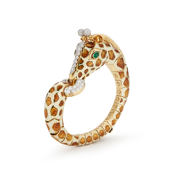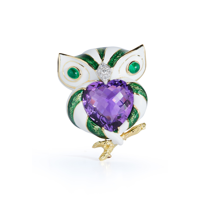 Hoot broşta 18 karat altın ve platin beyaz mineli platin kalp şeklinde ametist yer alıyor. Hayvan başlarını ve çok sıralı değerli taşları bir araya getiren Midnight Owl Torsade bilezik, David Webb'in ikonik tasarımlarından Elizabeth Taylor bileziğe gönderme yapıyor. David Webb 1964 yılında Coty American Fashion Critics' Award'e layık görüldüğünde, komite moda fotoğrafçısı Milton Greene ve illüstratör Joe Eula'nın David Webb'in mine, değerli taş ve pırlantalarla bezeli zebraları, atları, kurbağaları ve zürafalarının yer aldığı "A Walk in the Woods" adlı filmi göstermişti.