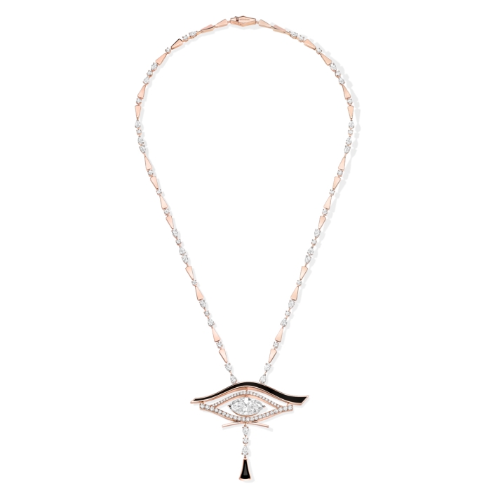 Valérie Messika'nın muska takıları için ilham kaynağı olan bu koleksiyon, Horus'un gözü Oudjat'ın modaya uygun ve çağdaş yorumu olarak vurgulanıyor. Eski Mısır mitolojisinde tanrı şahin ile ilişkilendirilen koruyucu bir sembol olan Oudjat, aynı zamanda iyinin kötülüğe karşı zaferini çağrıştıran ışığın bir yansıması. Oudjat, çok daha büyülü bir tılsım olan 7 karatlık bir elmas ile güçlendirilmiş koruyucu bir set. Bir kolye, yüzük ve bilezikten oluşan bu sette Oudjat motifi, sembolün ana hatlarını çizen bir kompozisyonda yeniden doğuyor.