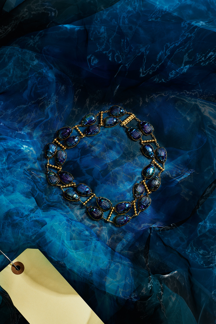 Altın ve camdan yapılmış kolyeKostüm tasarımcısı Kate Hawley, Tiffany ile yaptığı iş birliği için "Bu parçalar yalnızca birer aksesuar değil, karakterlerin içsel dünyalarını açığa çıkaran ve hikâyeye yeni bir boyut katan öğelerdi" diyerek sürecin sanatsal boyutuna dikkat çekiyor.