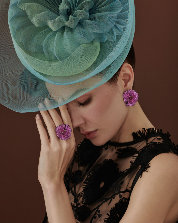 Koleksiyonun dikkat çeken teknik özelliklerinden biri, tasarımlarda titanyum metalinin kullanılması. Bu malzeme, kendine has benzersiz hafifliği sayesinde özellikle Water Lily yüzük ve küpelerdeki cüretkar ve volümlü formların adeta yer çekimsiz bir hisle taşınmasına olanak tanıyor. Titanyumun dayanıklı ve sıra dışı yapısı, mücevher tasarımcılarına heykelsi ve gösterişli eserler yaratma konusunda daha geniş bir hareket alanı sunuyor. Ayrıca, titanyumun hassas bir ısıtma tekniğiyle işlenmesi, malzemeye farklı renk tonları ve ışık nüansları kazandırılabilmesini sağlıyor.