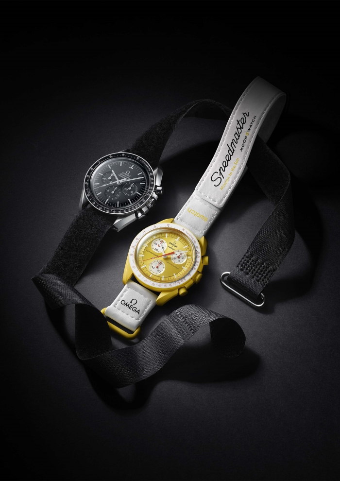 Lüksü sokak stiliyle bir araya getiren Omega ve Swatch iş birliği, ikonik 'Speedmaster Chronograph' modeline eğlenceli bir dokunuş getiriyor. Uzaydan esinlenen iki marka, isimlerini güneş sisteminin merkezindeki dev yıldızdan ve onun yörüngesindeki en ufak gezegene kadar farklı gezegen gövdelerinden alan 11 Swatch saatten oluşan bir koleksiyona hayat veriyor.