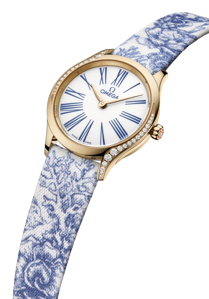 İsviçre'nin saat işçiliğini Fransız geleneğiyle harmanlayan OMEGA'nın Mini Trésor Koleksiyonu'nun bir diğer dikkat çeken serisi ise Toile de Jouy. Serinin kayışları, 18. yüzyılda Versay'ın güney doğusunda ortaya çıkan baskılı kumaş tasarımından ilham alıyor.