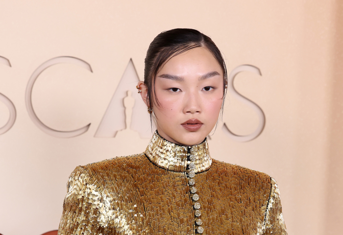 Kpop Demon Hunters yıldızı Audrey Nina, sıra dışı tırnaklarıyla gecenin en dikkat çeken isimlerindendi. Gold ojeli tırnaklarının her birinde yine aynı renkte metal toplar yer alıyordu. Makyajda cildi son derece duruydu. Dudaklar ve yanaklarda berry tonlardaki dokunuşlar fazlasıyla yeterli. Saçlar da bu pürüzsüz görünüme ayak uydurdu.