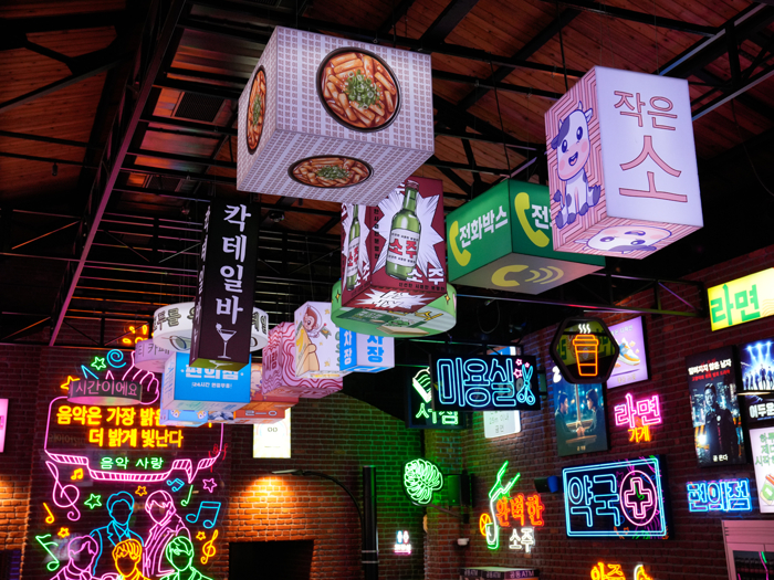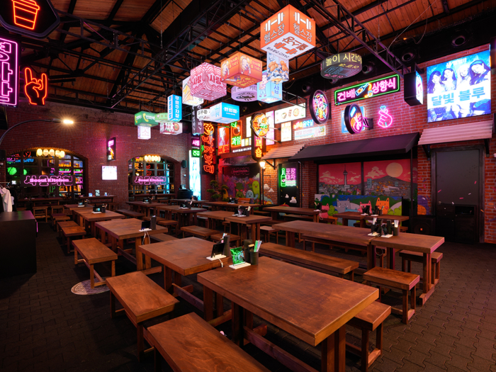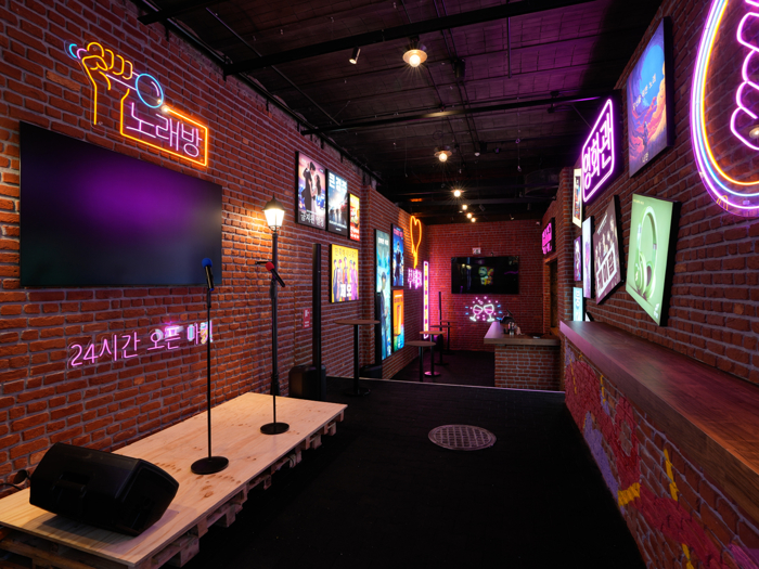 Tabii bir de tasarım noktası var; değinmemek olmaz. Adeta Seul'ün sokaklarını andırıyor: neon ışıklar, modern grafikler, bol renk. Biraz Tokyo estetiği, biraz Netflix dizisi havası var ama eğlenceli. Genç kitleye hitap eden bir dinamizm yakalanmış. Üstüne bir de karaoke alanı eklenince, Kore kültürünün sosyal tarafı tamamlanmış oluyor.