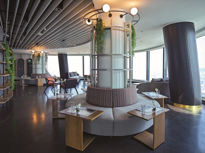45 katlı kulenin 40. katında konumlanan restoran internet sitesi üzerinden yapılan rezervasyonlarla misafir kabul ediyor. Online rezervasyon sisteminde ziyaretçiler kendi masalarını seçerek kuleye çıkış ücretini ödeyerek rezervasyonlarını oluşturabiliyor.