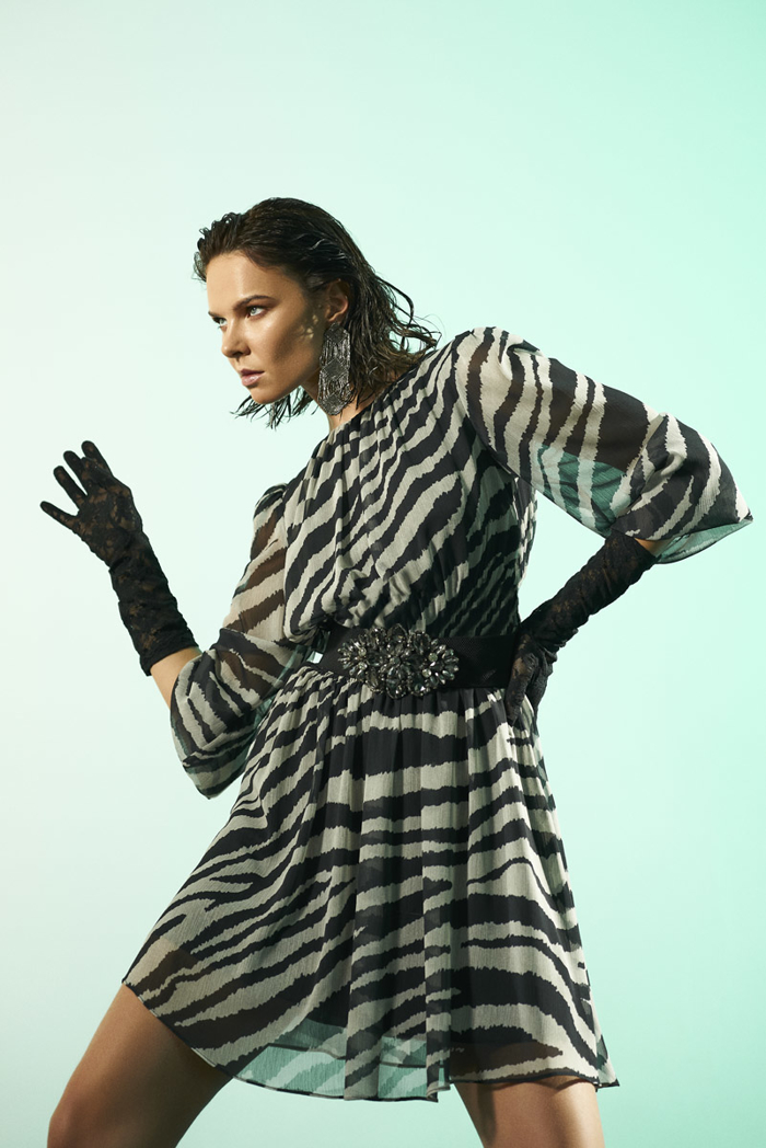 Koleksiyonda uzun elbiselerin ince kesim detaylarıyla birleşen zarif payet işlemeler, danteller, düğme detayları markanın güçlü yanlarını gözler önüne seriyor. Doğadan ilham alınan leopar, zebra ve kazayağı desenleri ile birlikte ekose grupları da ön plana çıkanlar arasında yerini alıyor.