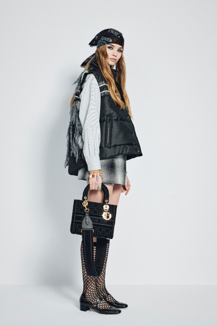 Dior’un ikonik çantası Lady D-Lite, Sonbahar-Kış 2020/2021 sezonuna özel olarak Maria Grazia Chiuri tarafından yeniden yorumlanmış. Çantanın kadife versiyonu, ton sür ton ‘cannag’e motifi ile ortaya çıkan derin gölge kullanımı sayesinde karakteristik bir duruşa sahip.