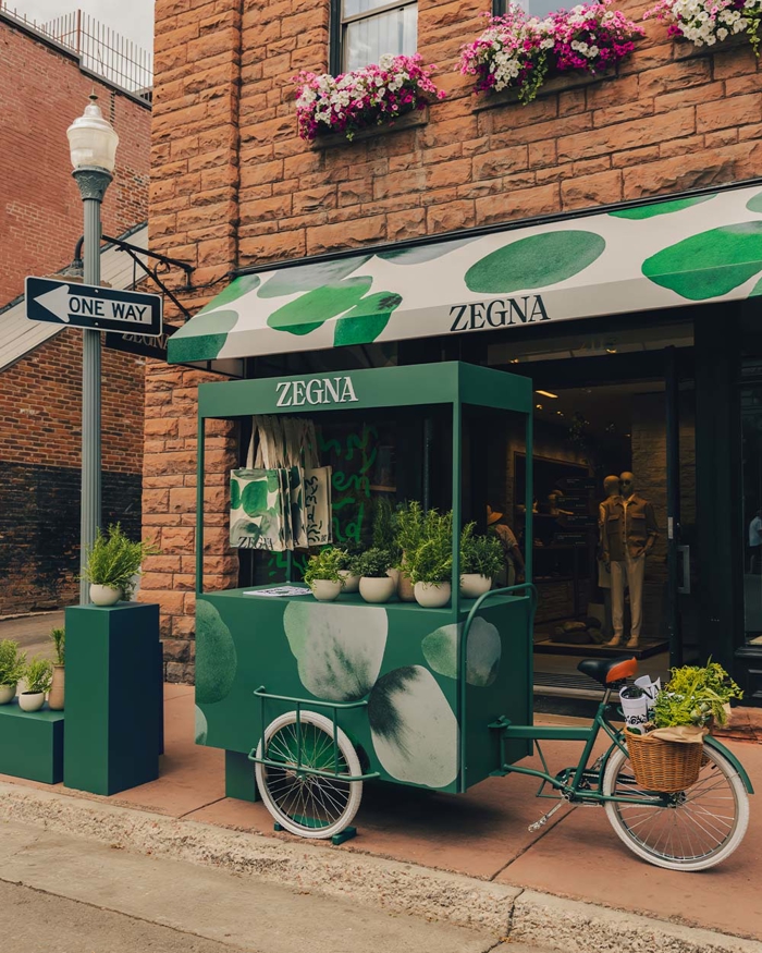 Salone del Mobile'deki enstalasyonun bir yansıması olarak kurgulanan Aspen kiosku, Alplerin botanik dokusunu, Born in Oasi Zegna kitabının arşiv esinlerini ve ikonik Green Mind tote'u bir araya getiriyor. Mekânın içinde yer alan yöreye özgü bitkiler, arşiv materyalleri ve resimli hikâyeler, ziyaretçiyi alışverişin ötesinde düşünmeye davet ediyor. Aspen pop-up'ı, İtalyan terzilik mirasını Rocky Dağları'nın ham güzelliğiyle buluşturuyor. Her ürün, her dokunuş, bilinçli bir seçim ve organik bir zarafet hissi taşıyor.