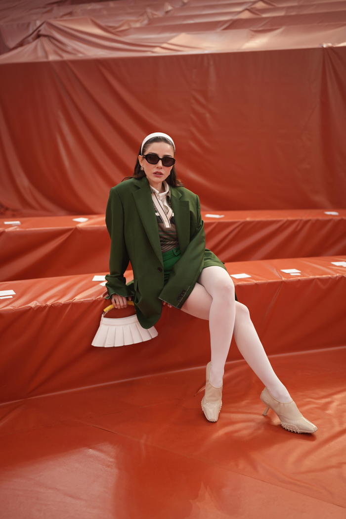Cansu AkınRenk paleti de aynı hikayenin devamı gibi ilerliyor. Soğuk gri yansımalar, mürekkep etkili melanjlar ve ıslak metal hissi veren koyu tonlar, koleksiyona yağmur sonrası bir yoğunluk kazandırıyor. Agave Green çimlerin yeniden canlanan yüzünü hatırlatırken, Rusty Red doğrudan Roland-Garros'nun kil kortuna ve ani yağmurlarda üstü örtülen zemine gönderme yapıyor. Böylece koleksiyon yalnızca form ve malzeme üzerinden değil, renkler aracılığıyla da doğa ile spor arasındaki ilişkiyi görünür kılıyor.