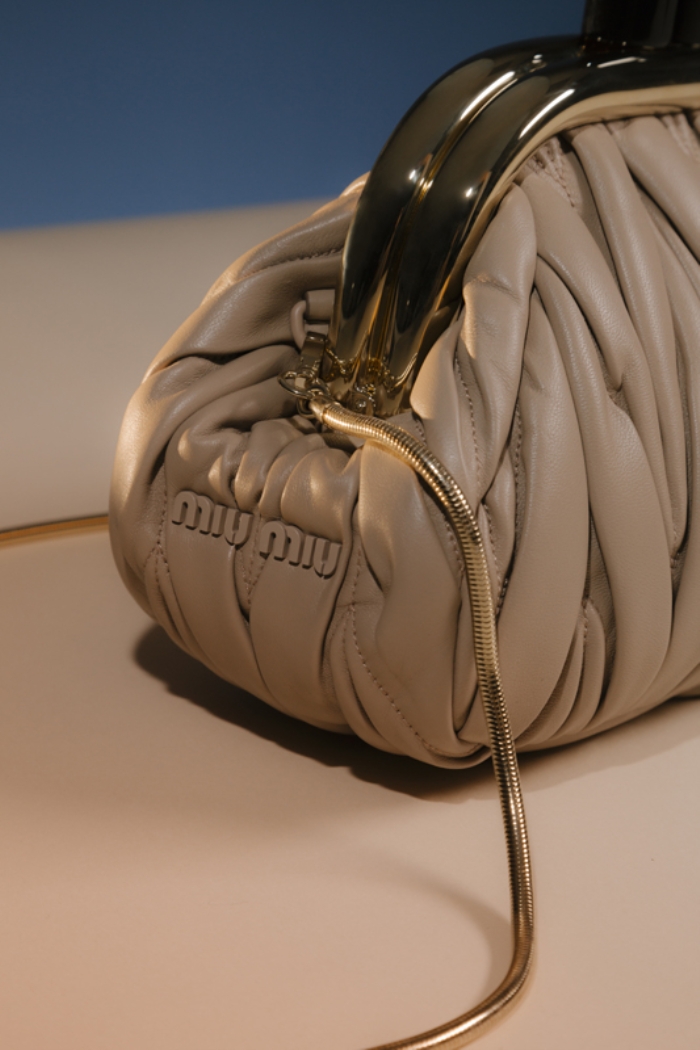 Miu Miu, Sonbahar/ Kış 2020 sezonunun yeni gözde çantası Miu Belle’de, hem üretim süreciyle hem de görünüşüyle marka DNA’sının imza niteliğindeki özelliklerini bir araya getiriyor. Gövdesi matelassé deriden yapılan Miu Belle; deri paneller, vatka ve elastik kumaşlarla kapitone ediliyor.