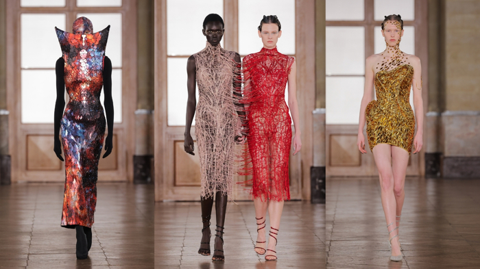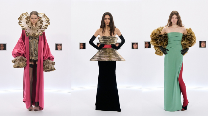 Çok konuşulan koleksiyonunu Hint felsefesindeki "advait" kavramı etrafında şekillendiren Gaurav Gupta, "Divine Androgyne" başlıklı koleksiyon, eril ve dişil enerjilerin birlikteliğini heykelsi couture formlar aracılığıyla yorumladı. Bedenle yakın ilişki kuran silüetler, enerji noktalarını izleyen danteller ve ağ benzeri yapılarla katmanlı anlamlar kazandı. Saat mekanizmalarından oluşan metalik işlemeler zamanın döngüselliğine gönderme yaparken; gezegen, meteor ve takımyıldızı motifleri kozmik bir anlatı oluşturdu. Robotik yüzeylerle geleneksel el işçiliğinin birlikteliği, köken ile gelecek arasındaki gerilimi yansıttı. Navkirat Sodhi'nin podyuma dönüşü koleksiyonun kişisel ve duygusal boyutunu güçlendirdi. Gupta, Doğu ve Batı referanslarını bir araya getirerek evrensel bir birlik fikrini couture diliyle ifade etti.