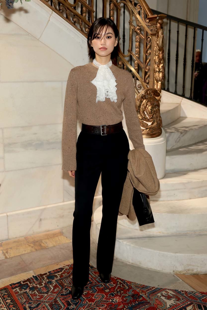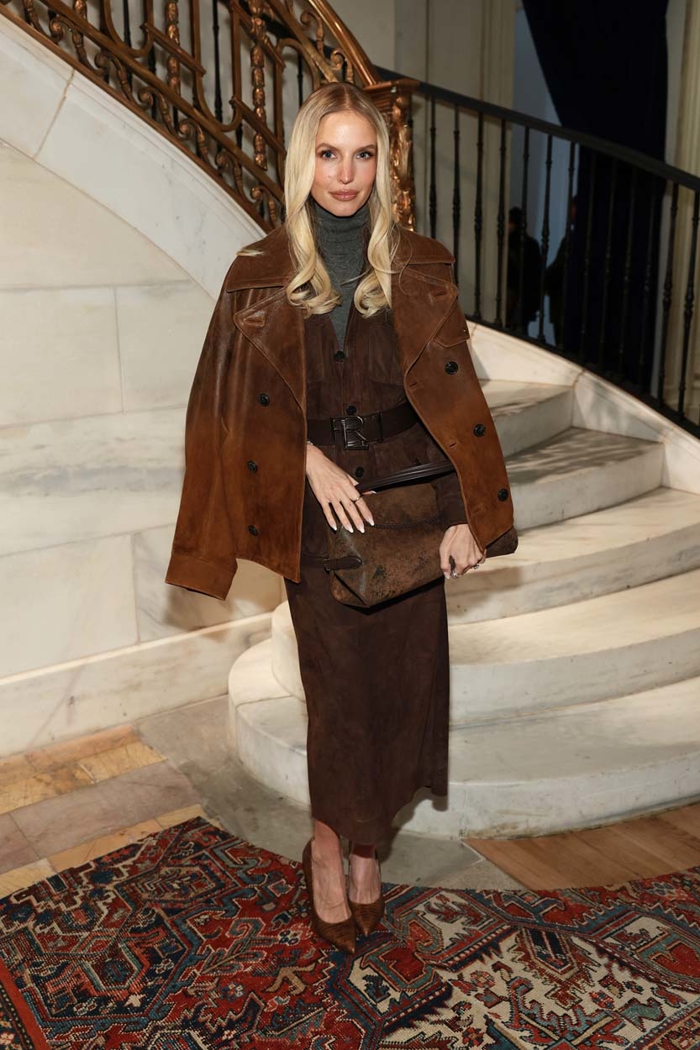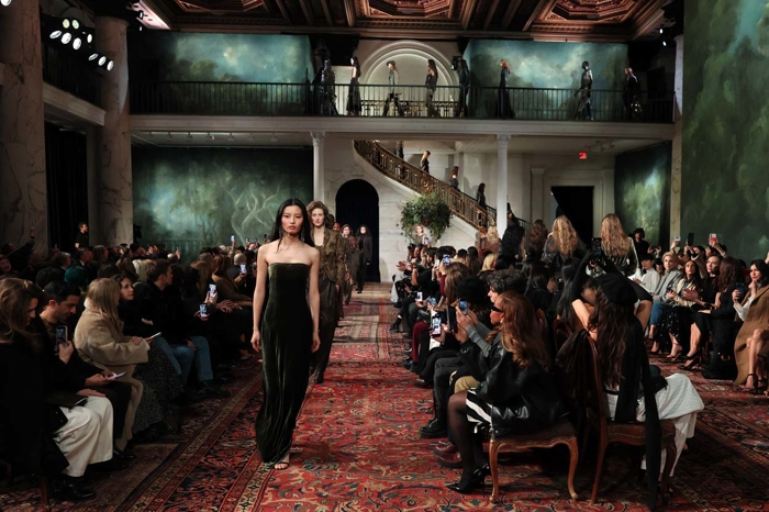 Broadway üzerindeki tarihî yapının ağır ahşap tavanları altında sunulan 2026 Sonbahar koleksiyonu, markanın köklerine yaptığı bilinçli bir dönüş gibiydi. Mekânın atmosferi; el boyaması manzaralar, zengin dokulu tekstiller ve malikâne hissi uyandıran dekorasyonla koleksiyonun tarihsel katmanlarını destekledi. Lauren bu kez romantik nostaljiye sığınmak yerine, tarihi referansları bugünün güçlü ve şehirli kadınıyla buluşturmayı seçti. Koleksiyonda sertlikle zarafet yan yana ilerledi. Güçlü omuzlu ceketler, Donegal tüvitler ve redingotları andıran kesimler; deri korseler, binici çizmeleri ve metalik dokularla tamamlandı.