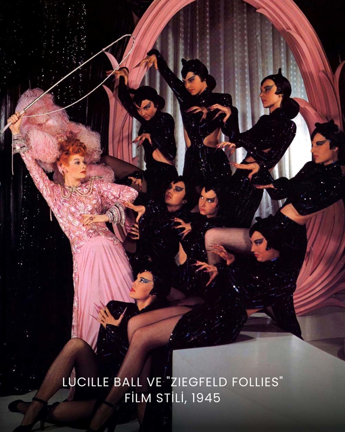 Bu yeni çizginin kökleri, 1920'lerin caz çağının ince silüetlerinde, Art Deco mimarisinin keskin geometri oyunlarında ve elbette Las Vegas'ın ikonlaşmış showgirl sahnelerinde yatıyor. Showgirl estetiği ilk kez 1900'lerin başında, Follies kızlarının tüylerle, kristallerle ve teatral silüetlerle sahneleri doldurduğu dönemde belirginleşti. Ardından Josephine Baker gibi isimlerin sahne enerjisi ve 30'ların Art Deco zarafetiyle birleşerek kendi görsel dilini kurdu.