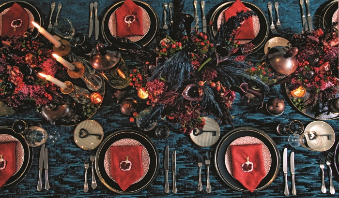 Haan'nın yeni yıl ve kış koleksiyonunu hazırlarken kumaş kartelaları arasında oldukça zaman geçirdim. Yeni yıl için hazırladığım ürünlerde klasik yeşil ve kırmızıya alternatif petrol yeşilinde ve bordonun bu tonunda karar kıldım. Peçetelerin üzerindeki narların boncuklarının hepsi kadınlar tarafından tek tek elde işlendi. Nar serisi zamansız, uzun yıllar saklanacak el emeği ve tasarımla birleşen bir koleksiyon oldu.