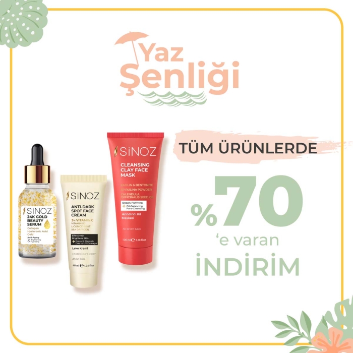 Sinoz, kampanyalarıyla yaz keyfinizi artırmaya geliyor. Tüm ürünleri %70 indirimle satışa sunan Sinoz'un ürün yelpazesinde cildinizi yaza hazırlayan güzellik kremlerinden, güneş koruyuculara kadar ihtiyacınız olan her şey var. Sinoz'un 'Yaz Şenliği İndirimleri'ne buradan ulaşabilirsiniz.