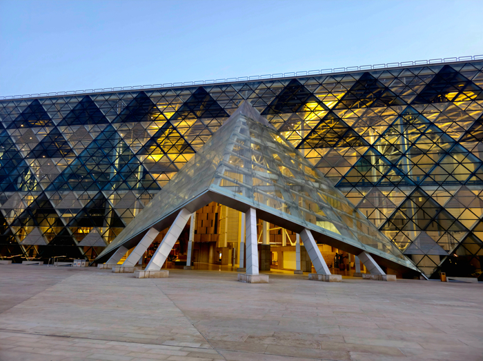 20 yılı aşan bir planlama ve inşa sürecinin ardından tamamlanan Büyük Mısır Müzesi, mimari anlamda hem coğrafyaya saygılı hem de son derece iddialı bir duruş sergiliyor. Yapı, ilk bakışta piramitlerle kurduğu bağla dikkat çekiyor; hatta tüm yerleşim, piramitlere yönelen bir mimari etrafında kurgulanmış durumda. Bu tercih, müzenin kendi başına bir anıt olarak değil, kadim dünyanın simgeleriyle uyum içinde bir kompozisyon gibi algılanmasını sağlıyor.