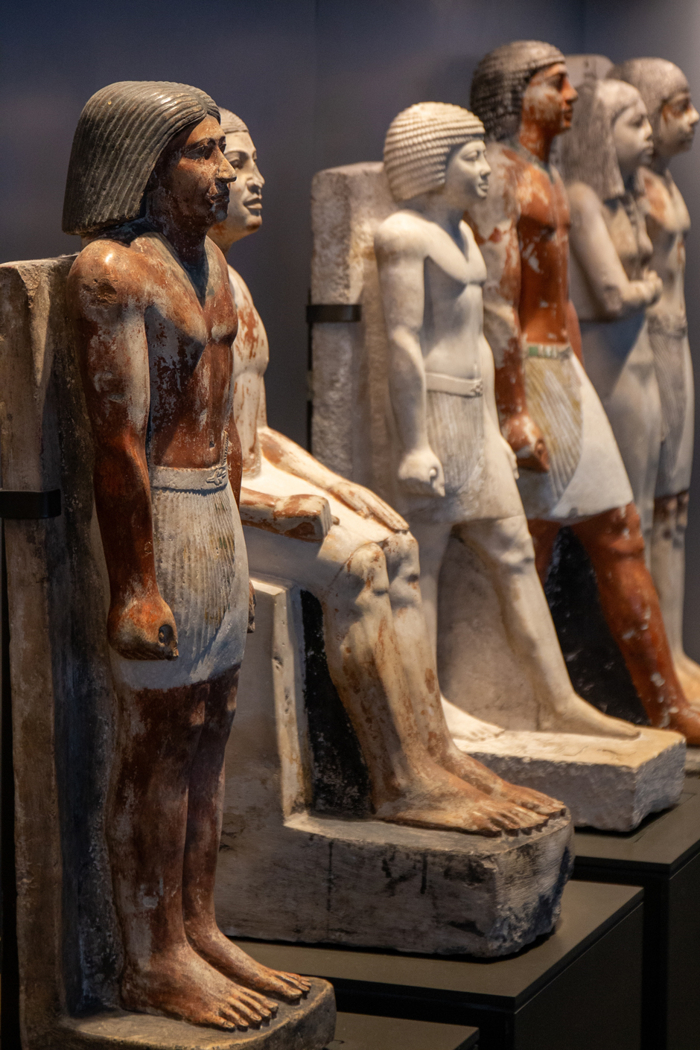 Sergi düzeni klasik vitrin mantığının ötesinde; her obje kendi hikâyesinin sahnesine dönüşmüş gibi. Işık kullanımı, mekânsal ritim ve anlatı akışı, bu bölümde zamanın durduğu hissini yaratıyor. Benzer şekilde, kraliyet heykellerinin konumlandırıldığı büyük merdiven alanı (Yolculuk Merdiveni) bir tür galeri değil, adeta bir geçit töreni hissi veriyor. Ziyaretçiler bu merdivenleri çıkarken kendini antik bir ayine katılıyormuş gibi hissediyor.