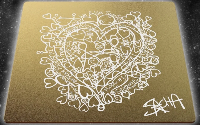 Sacha Jafri'nin sanat eseri içinse tuval olarak havacılık sınıfı bir alüminyum altın levha kullanılıyor ve bu da eserin, -173°C ile +123°C arasındaki sıcaklıklara ve Ay yüzeyindeki radyasyona dayanacak şekilde tamamen esnek olmasını sağlıyor.