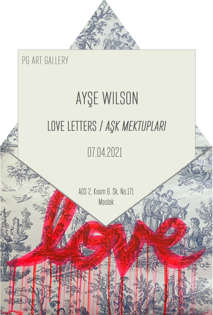Pg Art Gallery, Ayşe Wilson'ın "Aşk Mektupları" sergisine 5 Nisan – 7 Mayıs 2021 tarihleri arasında ev sahipliği yapıyor. Wilson, sergiyle aynı adı taşıyan "Aşk Mektupları" başlıklı son serisinde karantina ve eve kapanmaya karşı hissettiği belirsiz ve karışık duyguları temel alarak tuval yerine 'toile de jouy' adı verilen duvar kağıtlarını kullanıyor.