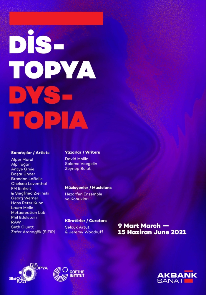 Akbank Sanat, küratörlüğünü Selçuk Artut ve Jeremy Woodruff'un üstlendiği arasında "Distopya Ses Sanatı" sergisine ev sahipliği yapıyor. 9 Mart – 15 Haziran 2021 günleri arasında gerçekleşecek olan sergide Alper Maral, Alp Tuğan, Antye Greie, Başar Ünder, Brandon LaBelle, Chelsea Leventhal, FM Einheit & Siegfried Zielinski, Georg Werner, Hans Peter Kuhn, Laura Mello, Metacreation Lab, Phil Edelstein, RAW, Seth Cluett ve Zafer Aracagök'ün eserleri yer alıyor. "Distopya Ses Sanatı" adlı sergi pandemi döneminde bir distopyayı andıran yaşantımızı ele alıyor. Serginin küratörleri Artut ve Jeremy Woodruff sergi ile ilgili, "Distopya Ses Sanatı İstanbul 2021'de sizi distopyalarla eğlenme cesaretini göstermeye davet ederek homeopatik biçimde distopyalara meydan okuyoruz" diyor. Sergiyi Akbank Sanat'ta 09 Mart – 15 Haziran 2021 günleri arasında ücretsiz olarak ziyaret edebilirsiniz.