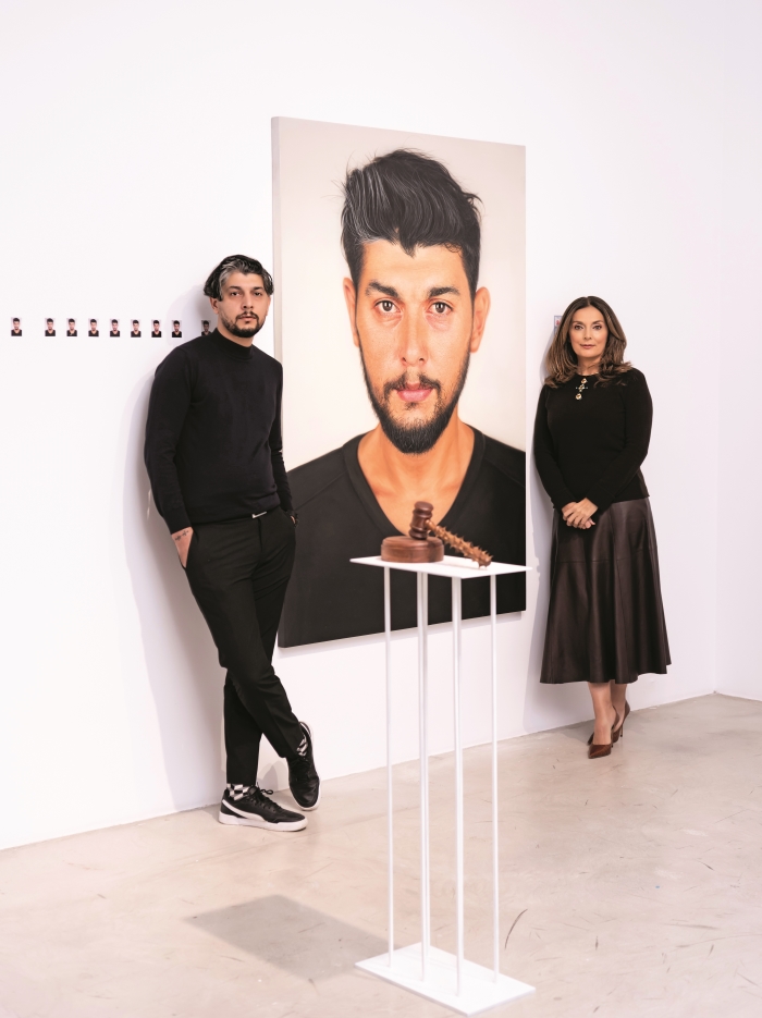 "Koleksiyondan genç bir sanatçı olan Alican Leblebici'nin fotorealist eseri 'Otoportre' ve 'Tokmak' eserlerini seçtim. Seçmemin sebebi; 31 yaşındaki sanatçının kimlik, adalet, suç ve iktidar gibi kavramlara farklı bakış açıları getirmesiydi. Çektirdiği vesikalık fotoğrafın resmini yapıyor ve onunla hüviyetini yeniliyor. Sanatı suç ve sanatçıyı suçlu durumuna koyarak farklı bir bakış açısı sunuyor. Ayrıca sanat tarihinde fenomen olan otoportreye çağdaş bir yorum katıyor. Koleksiyoner ile sanatçı ilişkisinde karşılıklı diyalog, güven, saygı ve zaman içinde gelişen dostluklar önemli. Bu sergi de bu açıdan önemli çünkü farklı koleksiyonlardan farklı işler görmek zihinsel / düşünsel ve görsel anlamda sanatseverlere farklı bakış açılar ı sunuyor. Sanatı geniş kitlelere ulaştırmak, sevdirmek ve farkındalık yaratmak adına bu tip projeleri her zaman destekledim. Toplumların sanat ile geliştiğini düşünüyorum. Ayrıca bu ekosistemin içinde yer alan sanatçı, galerici ve koleksiyoner birlikteliği çok değerli."