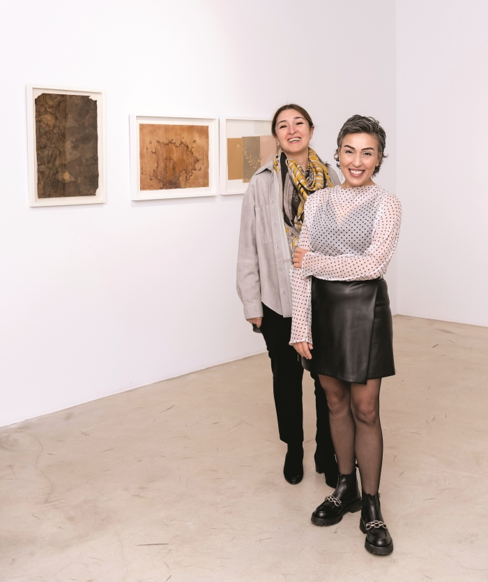 "Ben bu sergiye sevgili Latife-Ahmet Bayraktar'la katılıyorum. Bu sergi içinse iki yeni çalışma daha ürettim. Latife Hanım'daki çalışmam kendi üretimim olan kağıt üzerine gerçek altınla yaptığım bir çalışma olunca, yeni işlerimde de aynı malzemeleri kullandım. Doğadan topladığım bitkilerden elde ettiğim renklerle boyadığım kağıtlarımı sonrasında 'ahar' dediğimiz klasik bir işlemden geçiriyorum. Bu işlemlerden geçen kağıtların en az bir seneye yakın dinlenmesi gerekiyor. Benim bu kağıtlarımsa bir ila 10 yıl arasında dinlenmiş kağıtlar. Renk ve doku olarak her birinden bir tane daha üretmek mümkün olmadığından hepsi eşsiz. Bu bağlamda bütün malzemelerim doğadan ödünç olunca (el yapımı mürekkep ve altın da dahil) 'Hiçbir şey senin olsun diye vermez doğa, ödünç verir yalnızca.' diyen Shakespeare'in satırlarından aldığım ilhamla, ben de doğa ve insan ilişkisi üzerine çizdim. İlk kişisel sergim geçen sene yine Ferda Art Platform'da gerçekleşti ve Latife Hanım'la da o vesileyle tanıştım. Bu dili daha ileriye götürmek, daha çok insana ulaştırmak açısından bu sergi benim için ayrıca kıymetli çünkü klasik eğitimden ayrılan çalışmalarımın en yeni dönemindeyim. Bu sergi güncel ve yeni bir bakış açısı sunduğu için çok önemli. Bu sergiyle birlikte gördüm ki koleksiyonerler sadece eserleri değil, sanatçılarını da benimsemiş ve anlamaya çalışmış. Koleksiyoneri ve sanatçıyı yan yana görmek, kendi içinde keyifli; güvenli bir tablonun kamera arkasını izlemek gibi sanırım."