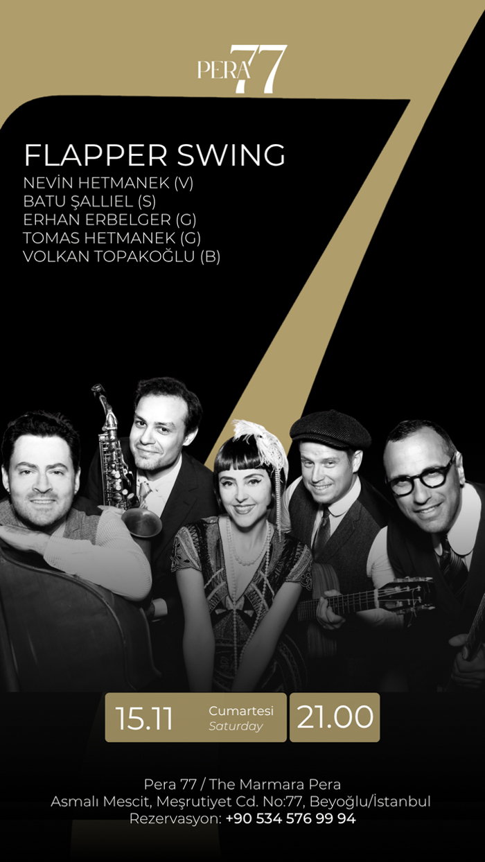 Son dönemde İstanbul, caz notalarıyla dingin ve romantik bir enerjiyle doluyor. İstanbul'un kültür rotasının kalbinde yer alan Pera 77, unutulmaz müzik gecelerine ev sahipliği yapıyor. Tarihi Pera ruhunu modern dokunuşlarla buluşturan mekân, bu ay da caz sahnesinin usta isimlerini ağırlayarak müzik tutkunlarına benzersiz bir atmosfer sunuyor. Kasım programında, hem Türkiye caz sahnesinin önemli temsilcileri hem de uluslararası sanatçıların yer aldığı mekan; akustik ezgiler, swing ritimleri ve soul tınılarıyla zenginleşen konser serisinde Jean-Baptiste Hardy'den Nilüfer Verdi'ye, Zeynep Özyılmazel'den Önder Focan'a kadar birbirinden değerli müzisyenleri dinleyiciyle buluşturuyor. Bu haftanın ilham veren isimlerinden biri de 15 Kasım'da sahne alacak olan Flapper Swing.