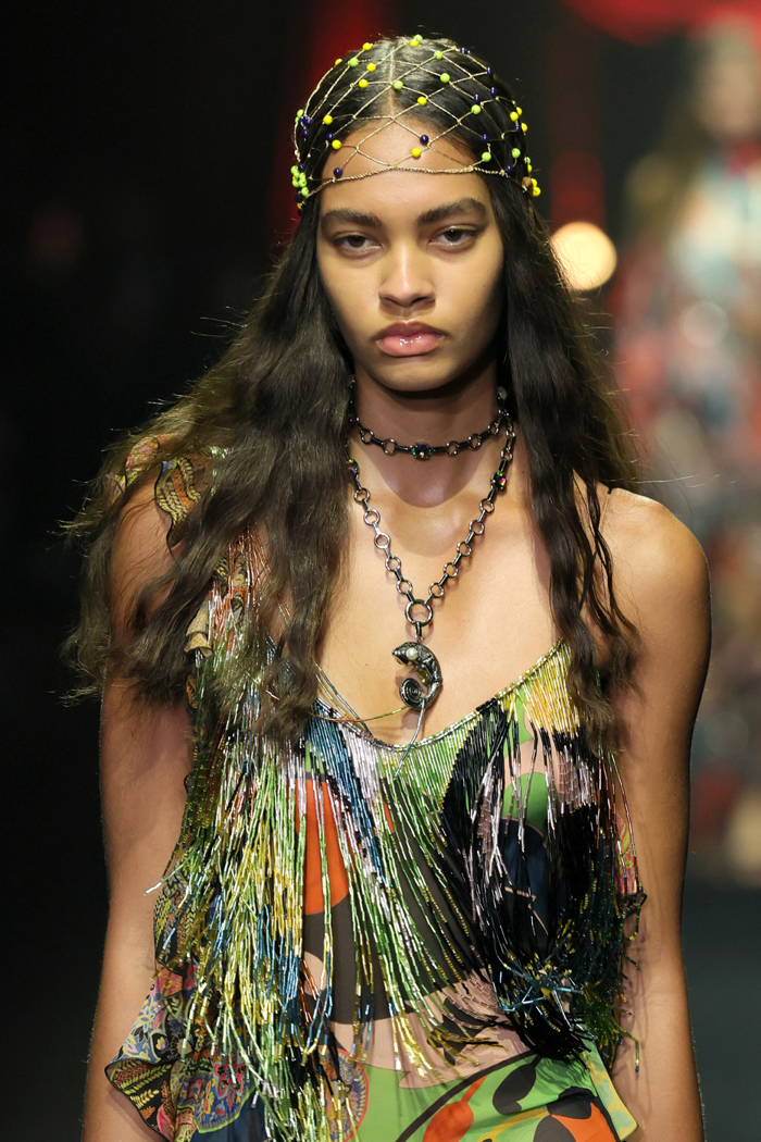 Moda Haftaları tam gaz sürerken, bir yandan da detaylar dikkatimizi çekmeye devam ediyor. Özellikle saçlarda aksesuarların oyun alanına dahil olması, modanın yönüne de yeni bir ruh katıyor. Bu konuda Etro, Milano Moda Haftası'nda 2026 İlkbahar/Yaz podyumunda, büyük ve gösterişli şapkalara ek olarak zincir ve boncuk kesişimindeki aksesuarlarıyla dikkat topluyor ve özel günler ve davetler için çarpıcı bir stil öznesi konusunda ilham oluyor.