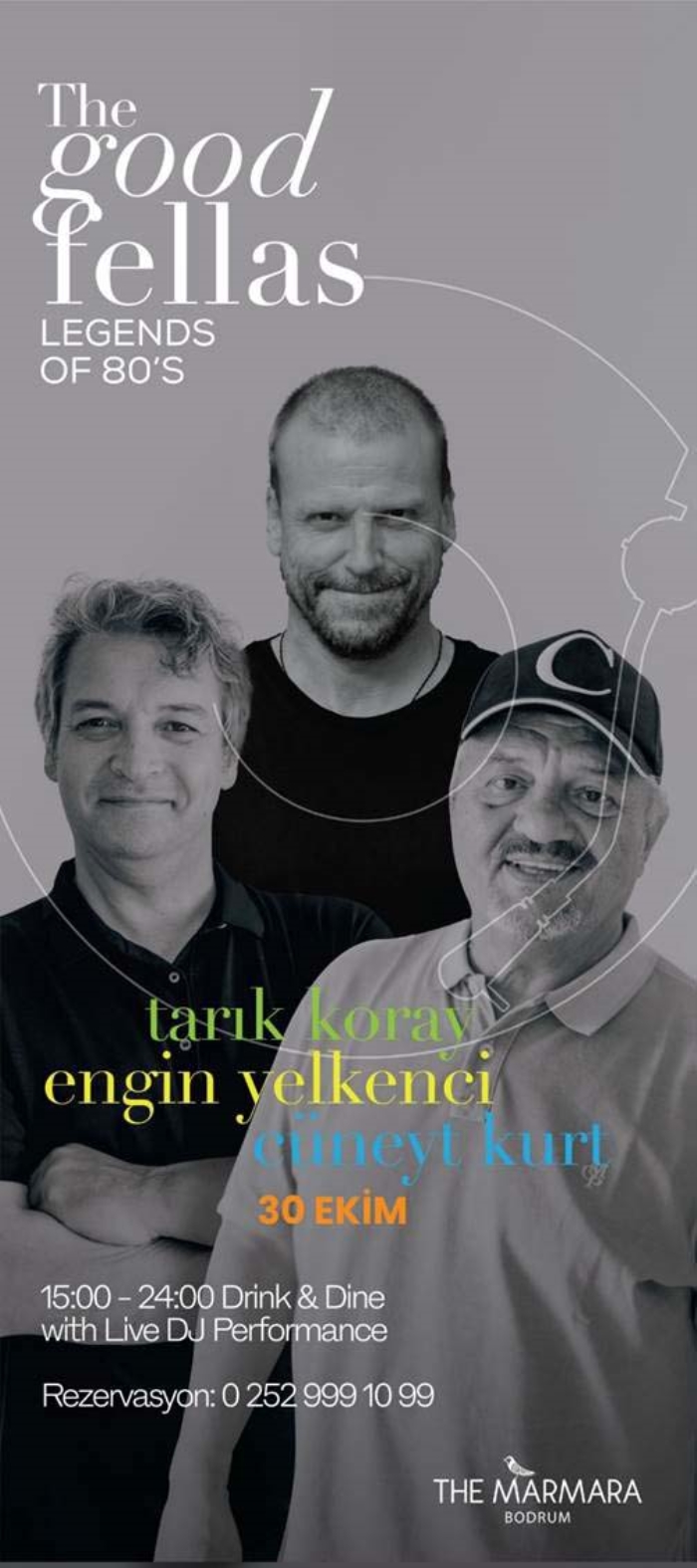80'li ve 90'lı yılların efsane gece kulüplerinin atmosferini tekrar Bodrum'a getiren The Good Fellas partileri Salih Saka, Engin Yelkenci, Niso Adato, Aydın Katırcıoğlu, Suat Ateşdağlı, Memo Garan, Cüneyt Kurt ve Tarık Koray gibi DJ'lerin performanslarıyla yaz boyunca The Marmara Bodrum'da gerçekleşti. The Good Fellas, bu kez long weekend'in tadını çıkarmak isteyenler için 30 Ekim Cumartesi Tarık Koray, Engin Yelkenci ve Cüneyt Kurt ile The Marmara Bodrum'da eğlenceseverlerle buluşuyor. Etkinlik yaz sonuna özel sonbahar güneşinin tadını çıkarmak, happy hour ile eğlenceyi günün en güzel saatlerinden itibaren yaşamak isteyenler için 15.00'te başlayacak ve gece yarısına kadar sürecek.