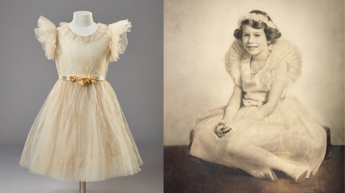 Sol: Nedime Elbisesi, Edward Molyneux, 1934, Fotoğraf: Jon Stokes; Sağ: York Prensesi Elizabeth olarak Kraliçe II. Elizabeth, Elliott & Fry, 1934 © Royal Collection Enterprises Limited 2025 | Royal Collection Trust. Ziyaretçiler, kıyafetlerin yanı sıra Kraliçe'nin seçimlerinin ardındaki zekâyı, stilin sembolizm ve inceliğini de gözlemleyebilecek. 10 Nisan - 18 Ekim 2026 tarihleri arasında The King's Gallery'de ziyaret edilebilecek bu sergi, Kraliçe II. Elizabeth'in zarafetine ve İngiliz modasının tarihine bir yolculuk sunuyor.