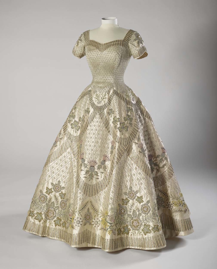 1956 tarihli gece elbisesi, Norman Hartnell tasarımı © Royal Collection Enterprises Limited 2025 | Royal Collection Trust.Sergiye eşlik eden kitap Kraliçe II. Elizabeth: Moda ve Stil, moda editörü Anna Wintour ve akademisyen Amy de la Haye'nin katkılarıyla Kraliçe'nin gardırobunu detaylı bir şekilde inceliyor ve İngiliz modasına yaptığı ömür boyu katkıyı mercek altına alıyor.
