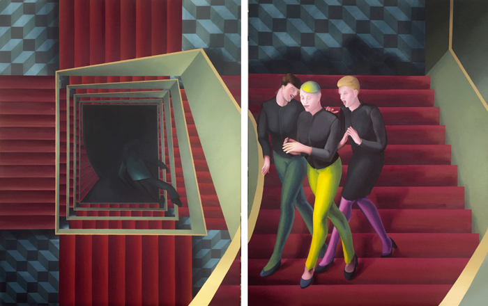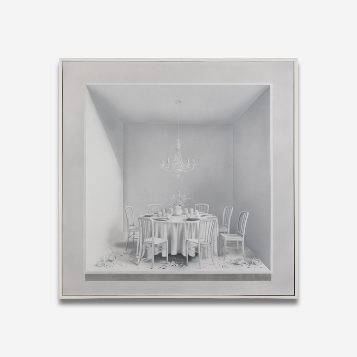 Emre Tura'nın resimleri, mimari biçimler ve insan arasındaki ilişkiyi araştırır. Yalın çizgiler ve geniş boşluklarla kurduğu sahnelerde, mekân çoğu zaman figürden baskın görünür. Atıl mekânlara odaklanan Boşlukta Birikenler serisinde, bir zamanlar süren yaşamlar yalnızca geride kalan izlerden sezilir. Sandalyeler, masalar ve kitaplıklar süregiden bir düzenin parçası değildir; sessiz birer hatıraya dönüşmüştür. Sanatçı, boşluğu bu sahnelerin merkezine yerleştirerek izleyiciyi kendi hikâyesini kurmaya davet eder. Boşluk burada bir eksikliğe işaret etmez, tam tersi hayal gücü ile tasavvur alanı sunar.