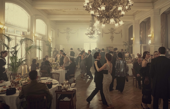 Dizinin en büyük başarılarından biri prodüksiyon, set ve kostüm tasarımına gösterilen özen. Dizinin, bütçesini doğru bir şekilde değerlendirerek figürasyon konusunda eksik kalmadığını söylemek gerek. Figürasyondan kaçınılan yapımlarda sahneler, ne kadar başarılı dizayn edilmiş olursa olsun, izlerken gözümüze yapay gelebiliyor ve bu da çoğunlukla figürasyondan kaynaklı oluyor. Arka planda doğru oranda insan görmememiz veya figüranların inandırıcılıktan uzak hareketleri, biz farkında bile olmadan dikkatimizi çekebiliyor. "Pera Palas'ta Gece Yarısı" dizisinde ise gerçekten İstanbul kalabalığını hissediyoruz. Figüranların, aksiyon ve yerleştirmeleriyle "Konuşuyormuş gibi yap"tan daha detaylı bir şekilde yönetildiğini görebiliyoruz. Tabii ki günümüzde geçen bir yapım ile bir dönem işinde figürasyon kullanımının, çok büyük işçilik farklılığı yarattığının da altını çizmek gerek. Arka planda da olsalar oyunculara herhangi bir yerden aldığınız kıyafeti giydirip geçemezsiniz. Arkada otuz kişi varsa, otuzuna da döneme uygun kostüm ve aksesuar tasarlanması ve giydirilmesi gerekiyor. Bu açılardan yapımın başarısı yadsınamaz.