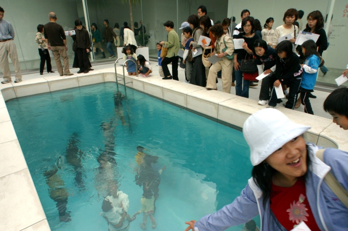 Muhteşem optik illüzyonlar yaratmasıyla tanınan Leandro Erlich'in "Swimming Pool" enstalasyonu, çağdaş sanatın en popüler örneklerinden biri. Basit bir perspektif oyunuyla olağanüstü bir tasarıma dönüşen eserde ziyaretçiler, havuzun iç kısmından girdiklerinde aşağıdan yukarıya doğru bakarlarsa kendilerini su altında hissettiren bir görüntü görüyorlar. Sanki havuzun dibinde yüzerken kafanızı kaldırıp su yüzeyine doğru bakıyormuşsunuz gibi bir manzara. Havuzun dışından aşağı doğru bakan ziyaretçiler ise aşağıdaki insanları suyun altında gibi görebiliyor. Bu görsel illüzyon iki kısım arasındaki birkaç santimlik suyla kaplı bir cam panelle sağlanıyor.