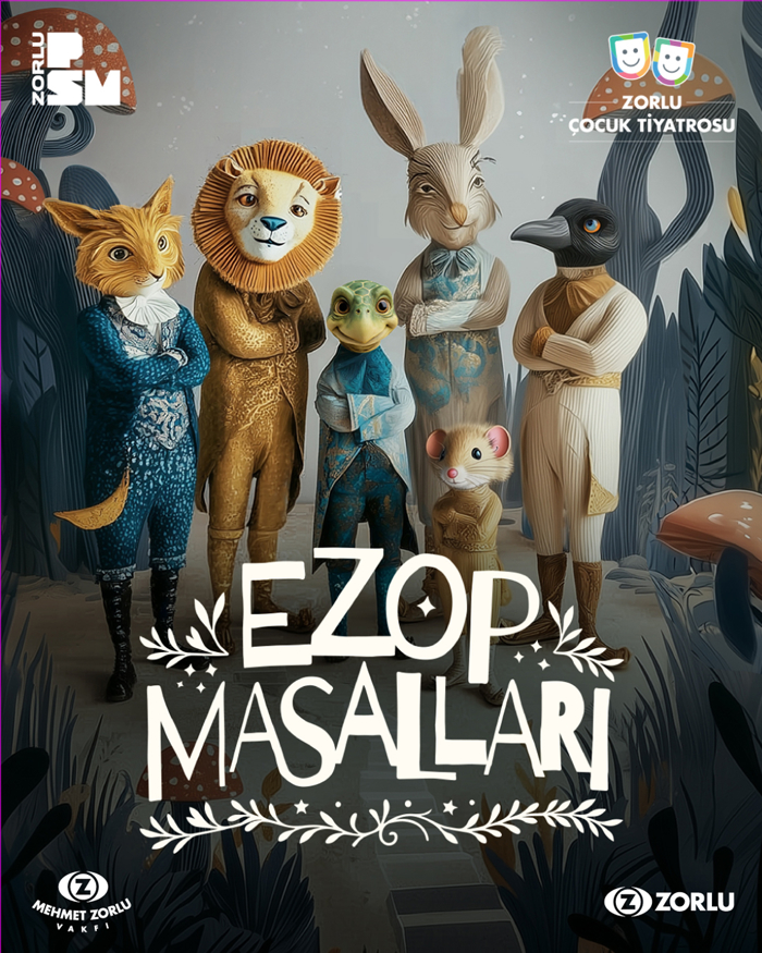 Minik izleyiciler müzik, kahkaha ve interaktif oyunlarla buluşuyor. Kaplumbağa ile Tavşan'ın yarışından Aslan ile Fare'nin beklenmedik dostluğuna, Kurt ile yaramaz bir çocuğun karşılaşmasından Karga'nın hikâyesine kadar birbirinden renkli masallar, Aslı Tandoğan, Mert Aydın, Mert Şişmanlar ve Zeynep Güngörenler'in canlı performanslarıyla sahneleniyor. Lerzan Pamir'in yönetiminde hayat bulan oyun, müzik ve kuklaların ön planda olduğu anlatımıyla 4-8 yaş arası çocuklar için tasarlanmış, dinamik ve eğlenceli bir deneyim sunuyor. Dekor, kostüm, koreografi ve ışık tasarımıyla sahnede adeta bir masal dünyası yaratılan Ezop Masalları, küçük sanatseverleri hem güldürüyor hem de hayal güçlerini harekete geçiriyor.
