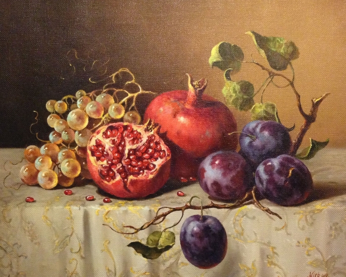 Benzer tarihlerde Cezanne da Natürmortlar yaratır. Evrensel bir dile sahiptir natürmortlar. Cezanne'ın şaheserlerinden biri, üstelik Nar'lı natürmortu Metropolitan Müzesi Koleksiyonu'nda yer alır.