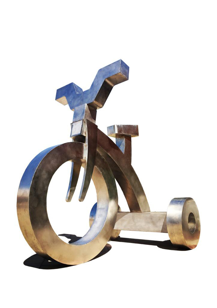 İzleyicinin bu heykele dokunmasını hatta üzerine çıkmasını istiyorum. Kısa bir süre bile olsa tekrar çocukluklarına dönmelerini, mutlu hissetmelerini istiyorum. Sanatçı yaratabilmek, üretebilmek için pek çok farklı kaynaktan beslenebilir. Bazen okudukları, izledikleri bazen de kendi hayatlarından referanslar alabilir. Bisiklet imgesini özellikle çocukluğumuzun güçlü anılarına gönderme yapan, izleyicinin dolaysız, kolay iletişim kurabileceği bir heykel olarak yeniden yorumladım. Bu devasa üç tekerlekli bisiklet heykelini paslanmaz çelik malzemeden tasarlayıp yaptım. Gerek izleyicilerin istedikleri gibi dokunup üzerine tırmanabilmeleri, gerekse dış mekanda, her koşulda yüzlerce yıl dayanıp, kalıcı olması bakımından paslanmaz çeliği tercih ettim. Parlak metal yüzeylerin işin konseptine de katkı sağladığını düşünüyorum. Heykelde renk, form, doku, malzeme ne kadar önemli olsa da, teknik ve kavramsal dengeyi doğru kurgulamak gerekir. Bu heykelimde paslanmaz çeliğin kendi doğal parlak metal rengine ayrıca müdahalede bulunmadım. 2006 yılında ilk Contemporary Istanbul'dan itibaren tüm fuarlarda heykellerim ve enstalasyonlarımla yer aldım."