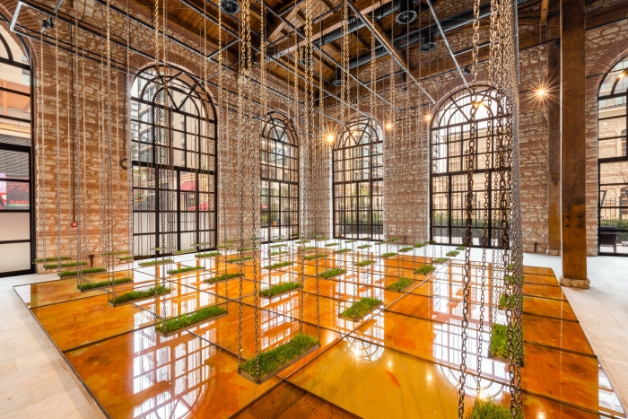 "Limbo", kendisini sürekli yenileyen doğanın ve zamanın bıraktığı izleri yansıtarak varoluşun birbirleri üzerindeki etkisini, direncini ve belirsizliğini ifade ederek izleyicilere yaşam ve ölüm arasındaki yakınlığı deneyimleme imkanı sunuyor. Canan Tolon'un sıraladığı salıncakların çim ve su gibi doğal malzemelerle ve mekanın doğal koşullarıyla etkileşimini gösteren enstalasyonu, sanatın zamanla nasıl dönüşerek yeni formlar aldığını izleyiciye gösteriyor. Tolon, sergide suyun metal salıncaklara yaptığı korozyon ve aşınma hali üzerinden doğayı, çevreyi ve yaşamı yeniden düşünmemize olanak tanıyor. Küratörlüğünü Ayça Okay'ın üstlendiği Limbo, yer aldığı tarihi bina Fişekhane'nin 18-19 yy. da mühimmat, fişek ve ordunun ihtiyacı olan metal aksanların üretim yeri olma özelliğine gönderme yaparak, yaşam-ölüm ve inşa etme-yıkım gibi zıtlıkların hayatımızın her daim bir parçası olduğu gerçeğine vurgu yapıyor. Metalin giderek paslanmasına, çimlerin büyümesine ve zaman içerisinde kuruyarak ölmesine sergi boyunca tanıklık edecek izleyici, doğanın, zamanın ve hayatın döngüsünün bir parçası oluyor.