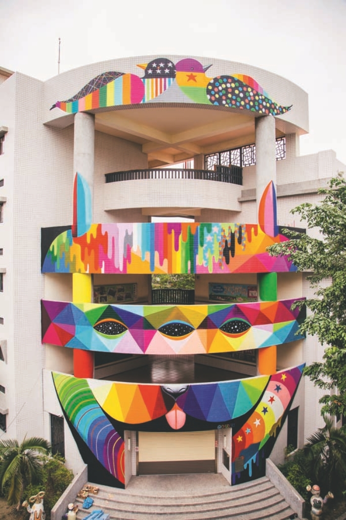 1997’den beri dünyanın dört bir yanındaki binalara yaptığı renkli müdahaleler ve heykelleriyle ön plana çıkan multidisipliner sanatçı Okuda San Miguel, tren yolları ve terk edilmiş fabrikalara çizdiği eserleriyle tanınıyor. Çok renkli geometrik desenleri ile şehrin gri silüetine hayat veren sanatçı, eserleri aracılığıyla ‘varoluşçuluk’, ‘evren’, ‘sonsuzluk’, ‘hayatın anlamı’ ve ‘kapitalizmin yanlış özgürlüğü’ hakkında çelişki yaratırken, modernite ve köklerimiz arasındaki çatışmayı da gözler önüne seriyor. Benzersiz bir ikonografik dile sahip olan Okuda San Miguel’in büyük ölçekli işleri, Hindistan, Mali, Mozambik, Amerika, Japonya, Şili, Brezilya, Peru, Güney Afrika, Meksika ve pek çok Avrupa ülkesinde karşınıza çıkabilir.